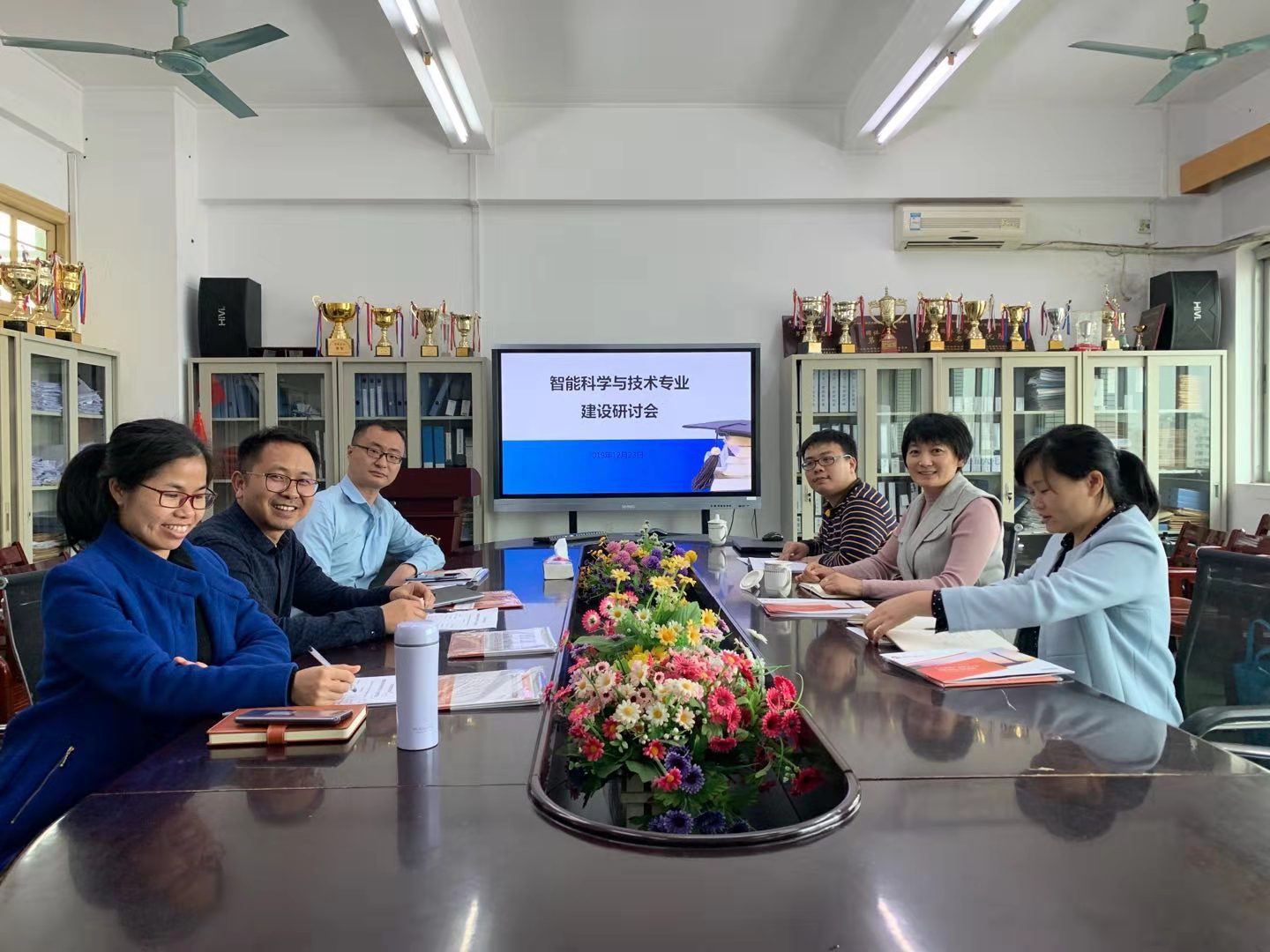 2019年12月23日下午,广东恒电信息科技股份有限公司董事长高静一行两人,来公司智能科学与技术系开展校企合作交流。智能科学与技术系教师代表杨舰教授、李亚、许清媛、程静、赵凯伟等博士参加了会议。
