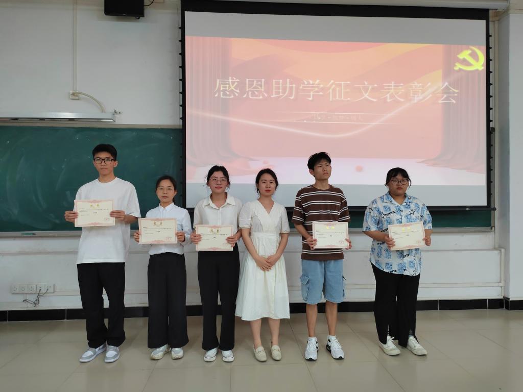 在此次征文活动中,50余名受助员工将他们克服困难、实现梦想的青春奋斗故事写成文采飞扬的文章,表达了对党和国家的感恩之情,最终评选出一等奖1名:霍永旺,二等奖2名:梁青霞,黄学轩,三等奖3名:许晓丹,林银峰,陈晓婷。6月1日,辅导员李文倩老师在白云校区第三教学楼113教室为6名获奖者颁发奖状,并鼓励同学们向这六位同学看齐,永怀感恩之心,自立自强。