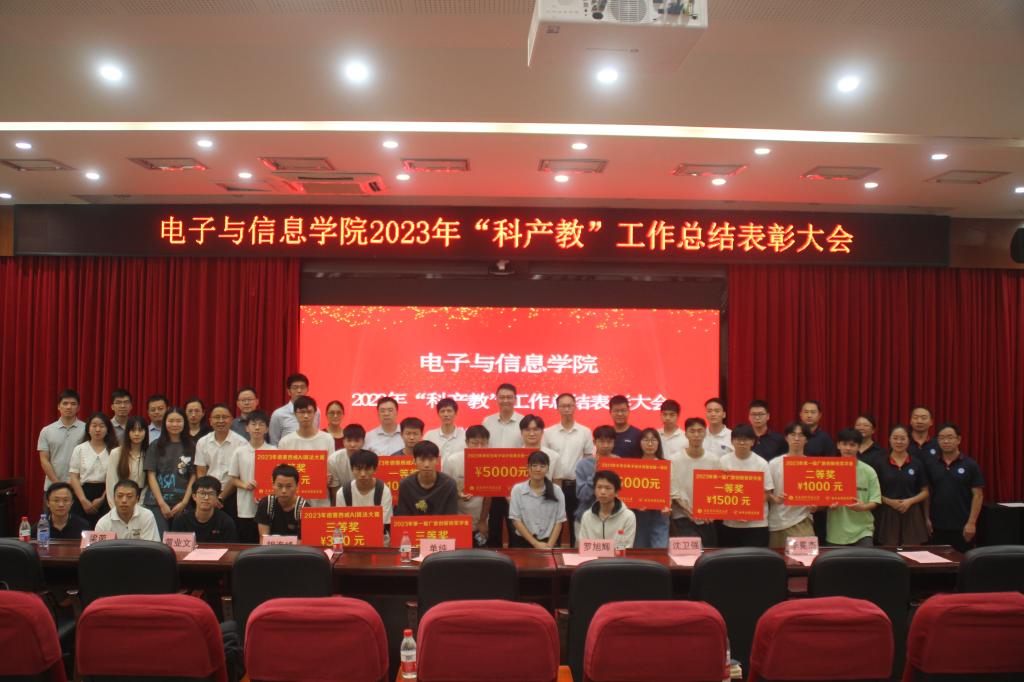 现场出席领导为广数创新班、德赛西威AI算法大赛、老员工电子设计大赛、研究生电子设计大赛获奖者颁奖并合影留念。