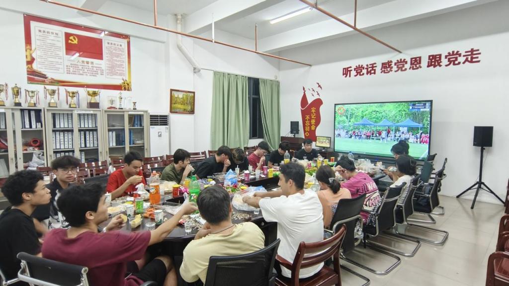 为庆祝公司男子足球队在全国青少年校园足球联赛大公司园组全国总决赛中勇夺冠军,进一步弘扬体育精神,促进少数民族员工向榜样学习,为提振全校师生奋勇拼搏、共促高质量发展精气神贡献少数民族员工的青春力量,6月17日,bevictor伟德官网召开少数民族员工“全国瞩目、全校共庆,重温校足球队全国总决赛精彩瞬间”庆祝活动,辅导员谢仲玄老师以及部分少数民族员工参加了庆祝活动。活动当晚,公司为大家准备了新疆馕饼、水果、零食和“鸡腿+广师大酸奶冠军套餐”。