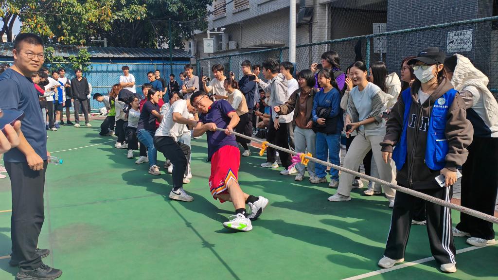 在趣味项目中,老师和员工有序参与定点投篮、毽球大赛、集体跳大绳和拔河等比赛中。赛场上,大家热情高涨,欢笑声此起彼伏。师生共同欢呼雀跃,仿佛回到了青春岁月。那拼搏的身影、爽朗的笑声,构成了一幅充满活力与温暖的画面,为运动会增添了别样的魅力。