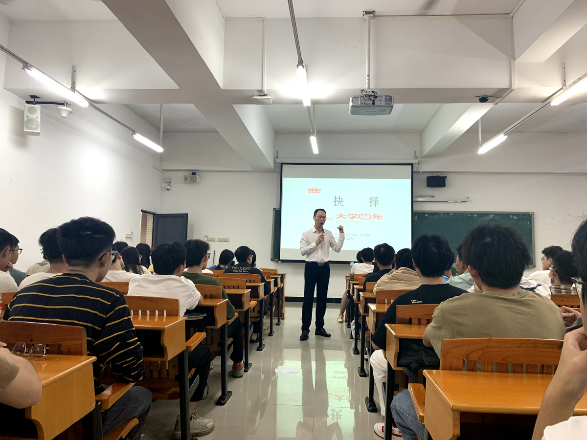 罗旭辉以《抉择—大学四年决定你的一生》为题,提出“大学期间想让自己成为什么样的人”是每个同学都应该认真思考并用实际行动去回答的问题。罗旭辉表示,党的十八大以来党和国家事业取得的历史性成就、发生的历史性变革、面临的历史性机遇和挑战的核心课程,是每一位员工正确认识新时代国内外形势的重要方向。罗旭辉鼓励每一位同学在大学期间要打好“两个底子”,一是打好专业基础和终身学习的底子,用自己的专业学识为党和国家的发展做出努力;二是打好精神的底子,大学期间是“打底色”的关键时期,每一位同学都应该在大学期间培养自律精神和社会担当。