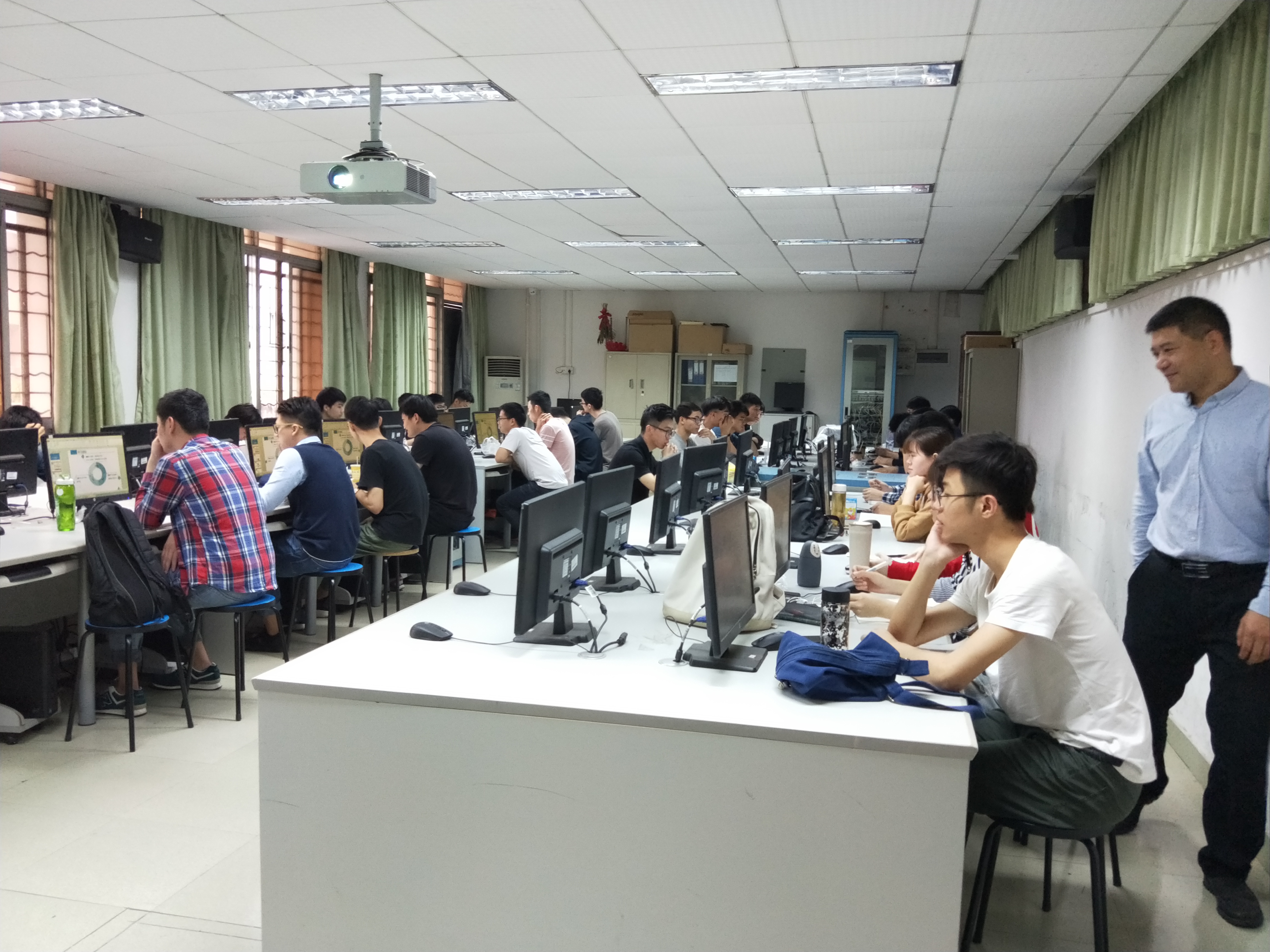 开学第一周,公司教学副经理柳秀山、副书记罗旭辉率领教务员、辅导员深入教学第一线,对开学第一周的教学运行情况进行了全面检查。其中,重点检查了师生到课上课情况、教学设施及设备运行情况以及教学保障情况。