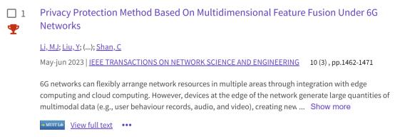 根据EssentialScienceIndicators(简称ESI)公布的统计结果,bevictor伟德官网单纯教授团队教师李冕杰论文入选“ESI 高被引论文”。论文《PrivacyProtectionMethodBasedOn MultidimensionalFeatureFusionUnder 6GNetworks》发表于《IEEETransactionsonNetwork ScienceandEngineering》,团队李冕杰副教授为第一作者,单纯教授为通讯作者。该论文介绍了一种用于网络服务的多维特征融合隐藏方法。该方法通过加密私人信息、提取多维特征并进行融合;在保证数据完整的同时实现高效、准确的信息隐藏。论文凸显了公司在网络前沿领域所取得的工作。